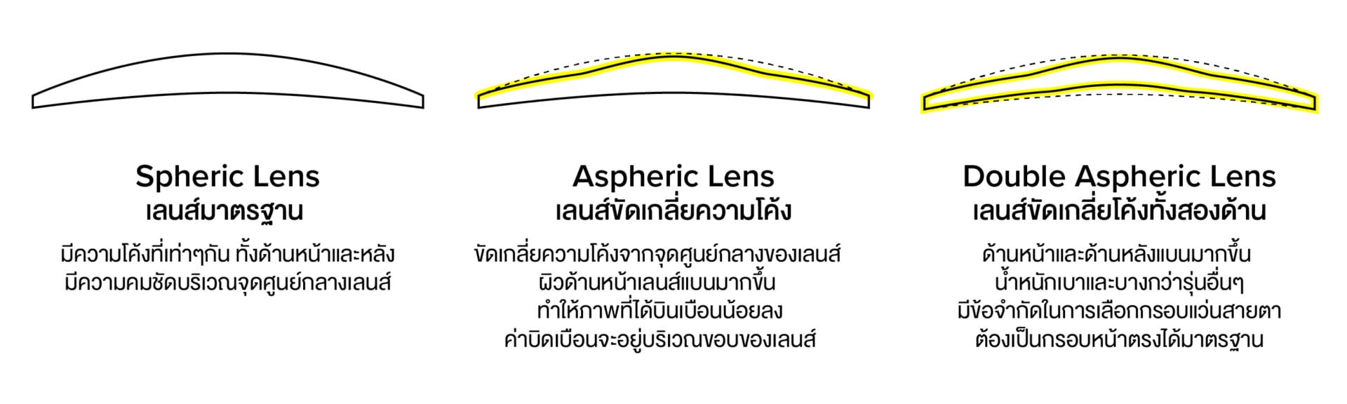 เลนส์ชั้นเดียวคุณภาพสูงจากญี่ปุ่น เป็นเพียงหนึ่งในไม่กี่แบรนด์ที่สามารถผลิตเลนส์ขัดแบนสองด้าน (Double Aspheric) ที่มาพร้อมกับฟังก์ชั่นเปลี่ยนสีขณะออกแดดที่ลูกค้าต้องการได้ ทำให้เลนส์รุ่นนี้เหมาะสมต่อการนำมาใส่เข้ากรอบเขาสัตว์และลดความเสี่ยงที่จะเกิดความเสียหายให้น้อยลงไปได้มาก หากใช้เป็นเลนส์รุ่นอื่นก็จะมีความเสี่ยงเสียหายสูงขึ้นหรืออาจใส่เข้ากรอบไม่ได้เลย แต่เนื่องจาก Occura จำหน่ายเลนส์ของทุกแบรนด์ชั้นนำ จึงสามารถคัดสรรเลนส์ที่จะแก้ไขปัญหาให้แก่ลูกค้าได้อย่างตรงจุดมากที่สุด ( อ่านเพิ่มเติมเกี่ยวกับเลนส์ชั้นเดียวประเภทต่างๆได้ที่นี่ : https://www.occuravision.com/post/singlevisionlenstype )