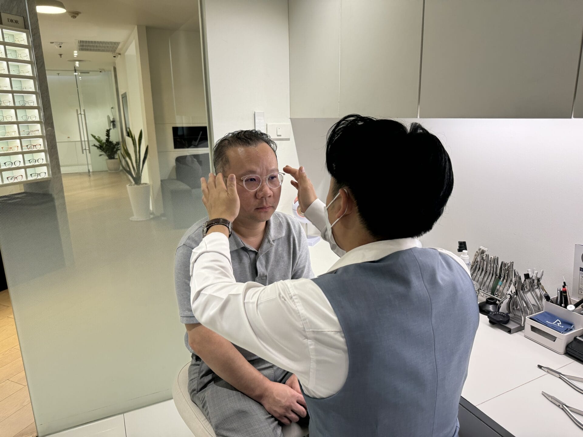 ลูกค้าวัย 46 ปี เดินทางมาที่ร้านด้วยอาการไม่คมชัดบนแว่นเดิมทั้งระยะไกลและใกล้ ใส่แล้วไม่สบายตา อายุแว่นเดิมประมาณ1ปีครึ่ง จากการตรวจสอบพบว่าโค้ทเลนส์เริ่มเสื่อมภาพจนอาจเป็นสาเหตุหนึ่งที่ทำให้คุณภาพการมองเห็นไม่ดีเท่าที่ควร ลักษณะการทำงานใช้สมาร์ตโฟนเป็นหลัก รองลงมาคือโน้ตบุ๊กและ PC